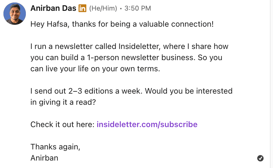 I run a newsletter called Insideletter, where I share how you can build a 1-person newsletter business. So you can live your life on your own terms.