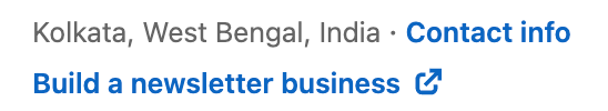 There is a blue link below your location on LinkedIn, you can add the newsletter signup link there as well.